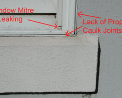 Upon closer examination it was found that the EIFS cladding provided an exceptional building envelope. Properly installed EIFS is an aesthetically pleasing and durable siding which performs well in any environment. However, if water infiltrates the system through such avenues as faulty windows (see picture 3), improper flashings (see picture 4), below grade application (see picture 5), or faulty workmanship (see picture 6), the water will get trapped between the wood sheathing and the EIFS system. This system, which is so effective at keeping water out of the building now traps the water inside the building envelope. The result is rotting wood, insect infestation, mold and other damage caused by the trapped water (see picture 7).